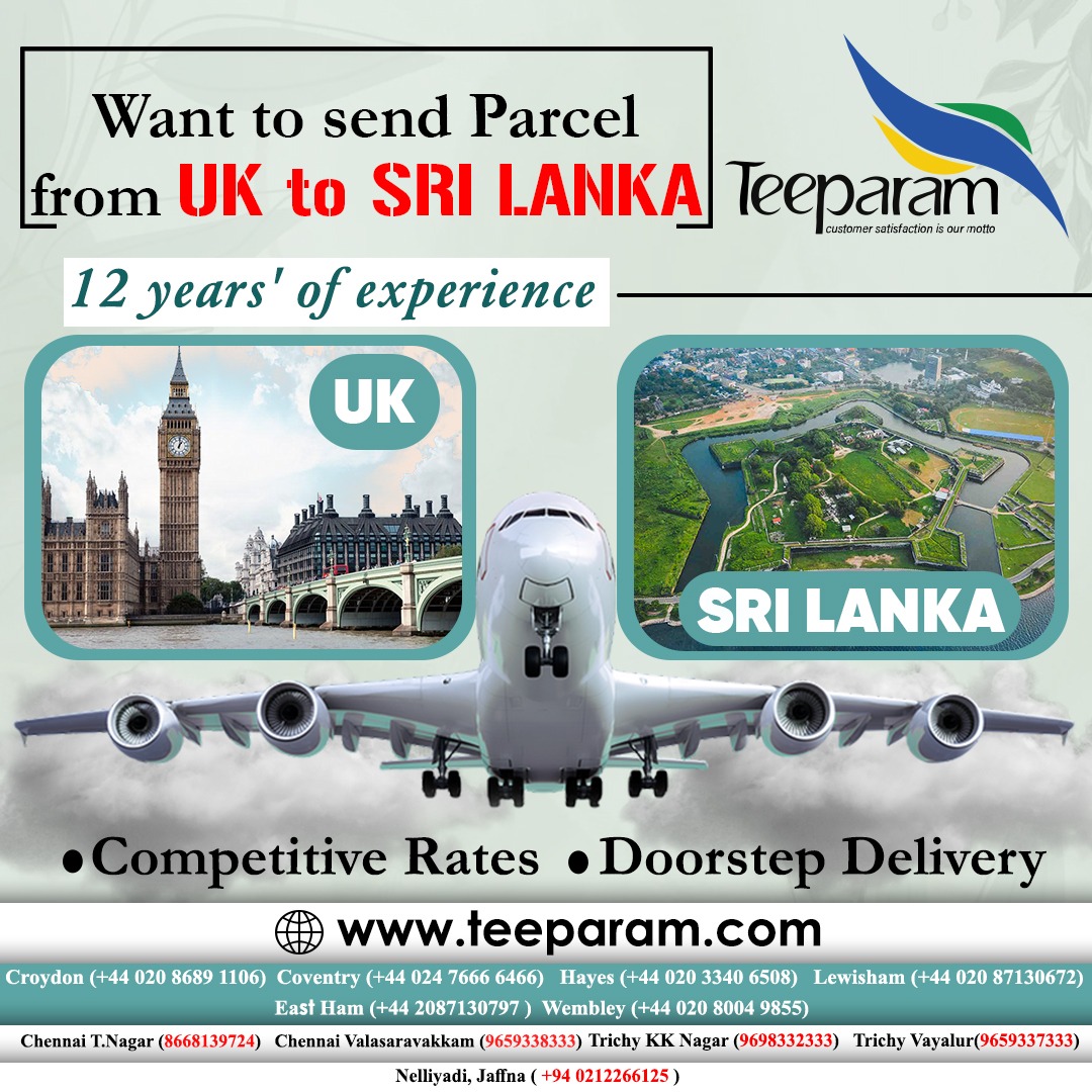 Since 2009, Teeparam has been serving its clients spread across countries by offering quality and reliable services covering parcel & courier, package tourism, money transfer and air ticket booking with dedication. The logistic company has its offices in UK, India to cater to the needs of its clients. It operates internationally through its local associates and international logistic companies like FedEx and DHL. Over the long years of its operation, the company has gained a committed base of satisfied clients and extended its reach to new areas. Clients can use our high-end online platform and local outlets to transact conveniently. Our courier charges to Sri Lanka are competitive and low which makes Teeparam an ideal choice to send parcel to Sri Lanka.
